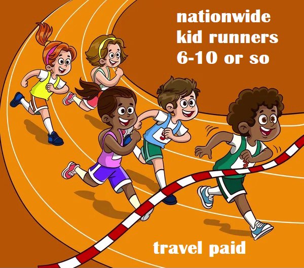 A major sports commercial is seeking real young runners between the ages of 6 and 10 from all ethnic backgrounds. No specific skill level is required, but applicants should have real running experience, such as participation in school sports, relay races, or kid marathons.