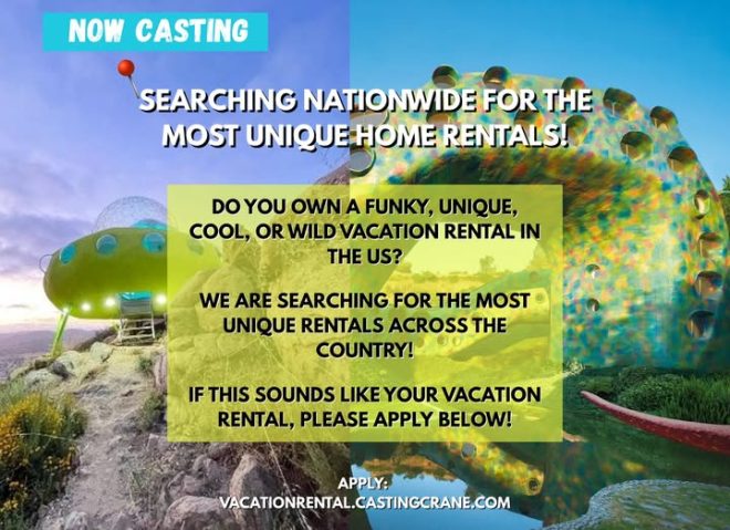 A nationwide search is now underway for the most unique, funky, and one-of-a-kind vacation rentals across the United States. Producers are on the hunt for standout homes that are anything but ordinary.