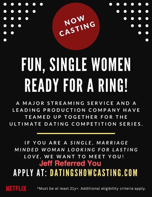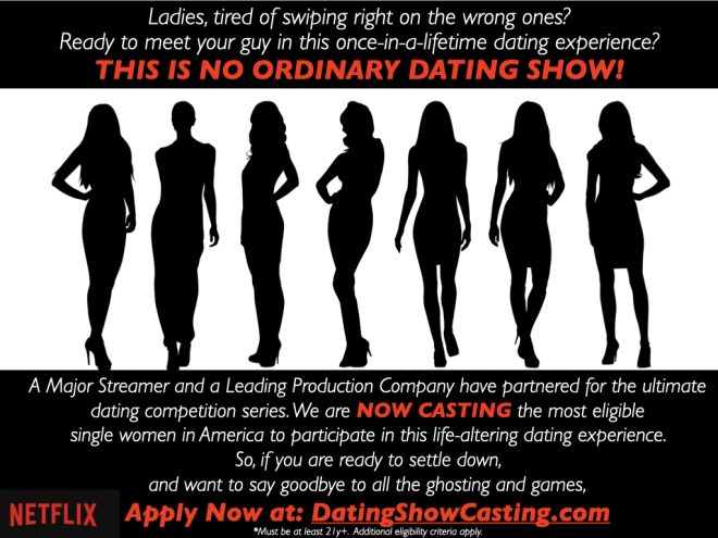 Netflix Casting Call: Marriage-Minded Single Women Wanted for New Dating Series.