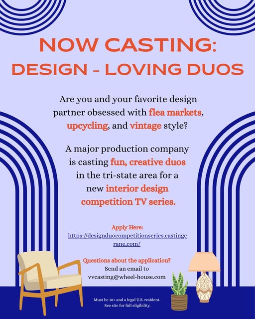 A major television network and leading production company are casting a brand-new interior design competition series and are currently on the lookout for creative, energetic duos from New York, New Jersey, and Connecticut. The series will spotlight pairs who are passionate about vintage style, flea market finds, and upcycling forgotten treasures into eye-catching, stylish spaces.