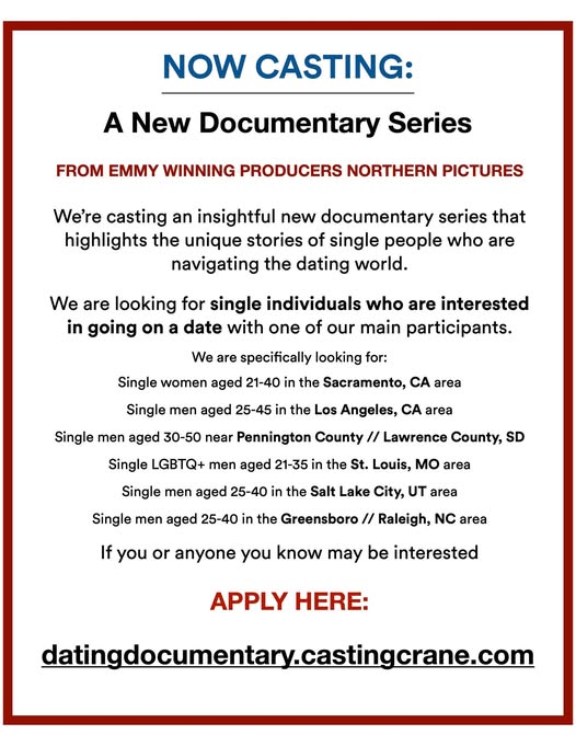 Apply Now at datingdocumentary.castingcrane.com
