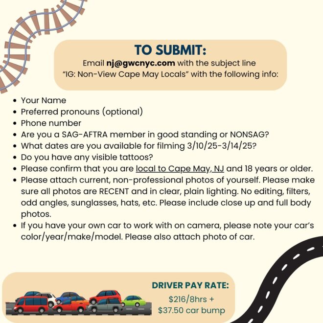Seeking CAPE MAY LOCALS to portray train station passengers or drivers with cars