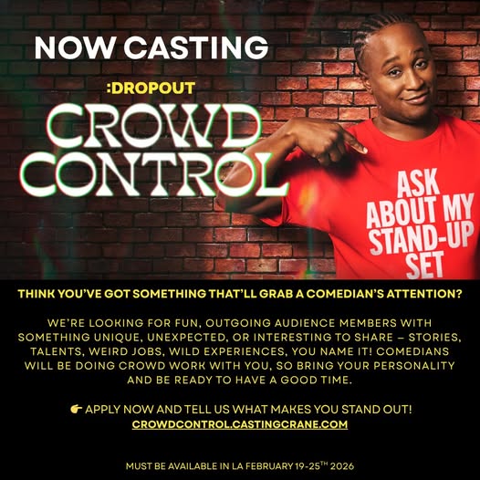 The production is looking for fun, outgoing people with something unique, unexpected, or interesting to share — whether it’s a wild story, unusual talent, or one-of-a-kind experience. Comedians will be doing live crowd work, so participants should be ready to engage, laugh, and have a great time on camera.