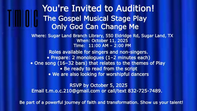 Audition Location: Sugar Land Branch Library, Sugar Land Texas