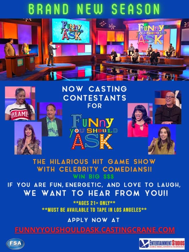 The daytime comedic game show Funny You Should Ask is currently in production in the Los Angeles area and is actively seeking contestants! This hilarious hit game show features celebrity comedians, high-energy contestants, and plenty of chances to win big money.