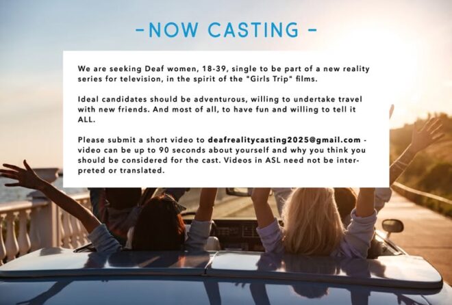 Submissions should be sent to deafrealitycasting2025@gmail.com.