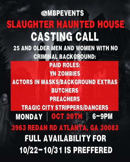 Those attending should mention that they heard about the opportunity through Ashley B at CAB Castings. It’s a perfect chance for anyone who loves Halloween, acting, and the thrill of a live audience to join in and help deliver unforgettable scares.