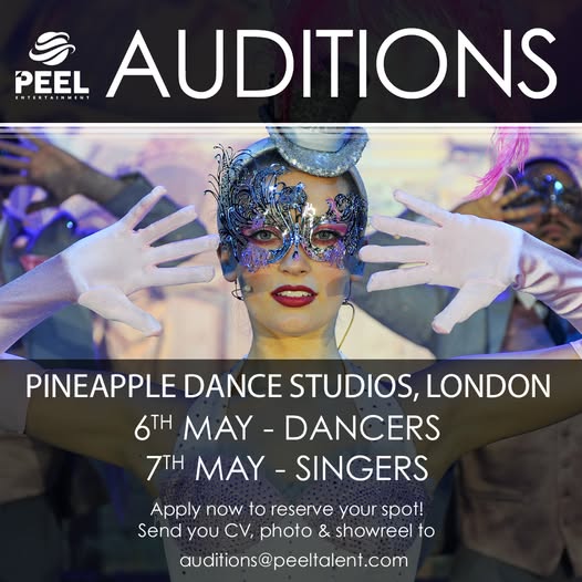 To apply, don’t forget to book your place by sending your CV, Headshot & Showreel to auditions@peeltalent.com