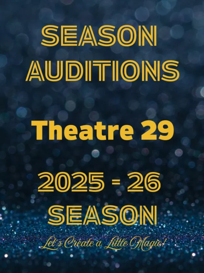 With the new season officially announced, Theatre 29 will host open group auditions on Saturday, August 9 at their main stage facility. This special event invites both seasoned performers and newcomers alike to present themselves directly to the full panel of casting directors for the entire season’s lineup.