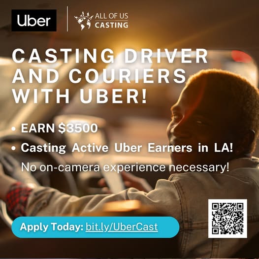 All of Us Casting is teaming up with Uber for an upcoming paid ad campaign that will feature real drivers and couriers, not actors. No previous on-camera experience is required. What is needed is your authentic self and real experience working with Uber.
