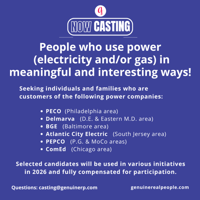 Seeking individuals and families who are customers of the following power companies:PECO / Delmarva / BGE / Atlantic City Electric / PEPCO / ComEd