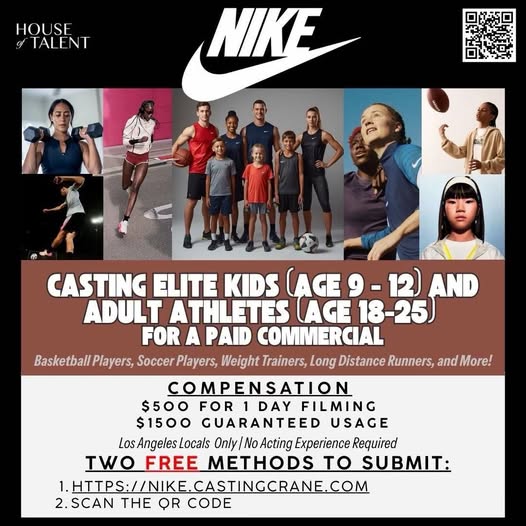 CASTING ELITE KIDS (AGE 9-12) AND ADULT ATHLETES AGE 18-25) FOR A PAID COMMERCIAL