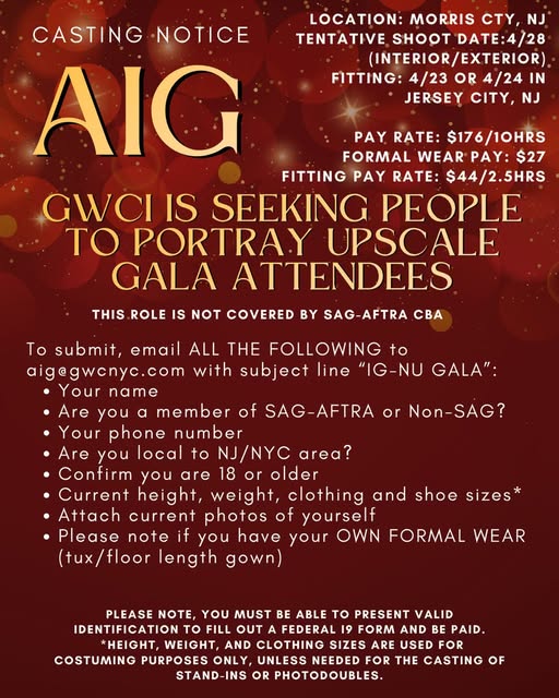 GWCI is seeking people to portray Upscale Gala Attendees (NONSAG-AFTRA Covered)