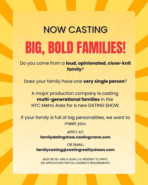 NOW CASTING: Multi-generational families in the NYC Metro Area for an exciting new DATING SHOW!