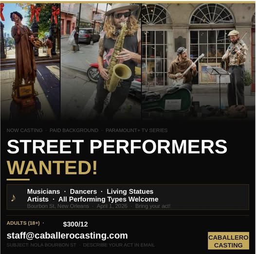 We are seeking Street Performers for a PARAMOUNT+ TV SERIES filming in New Orleans!