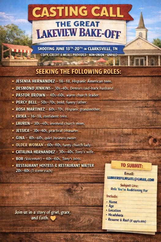 Lumiere Films is casting supporting and featured roles for our upcoming feature film shooting June 13th–20th in Clarksville, Tennessee.