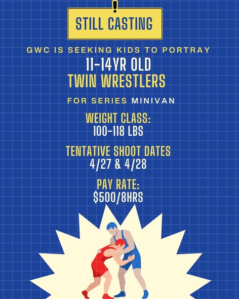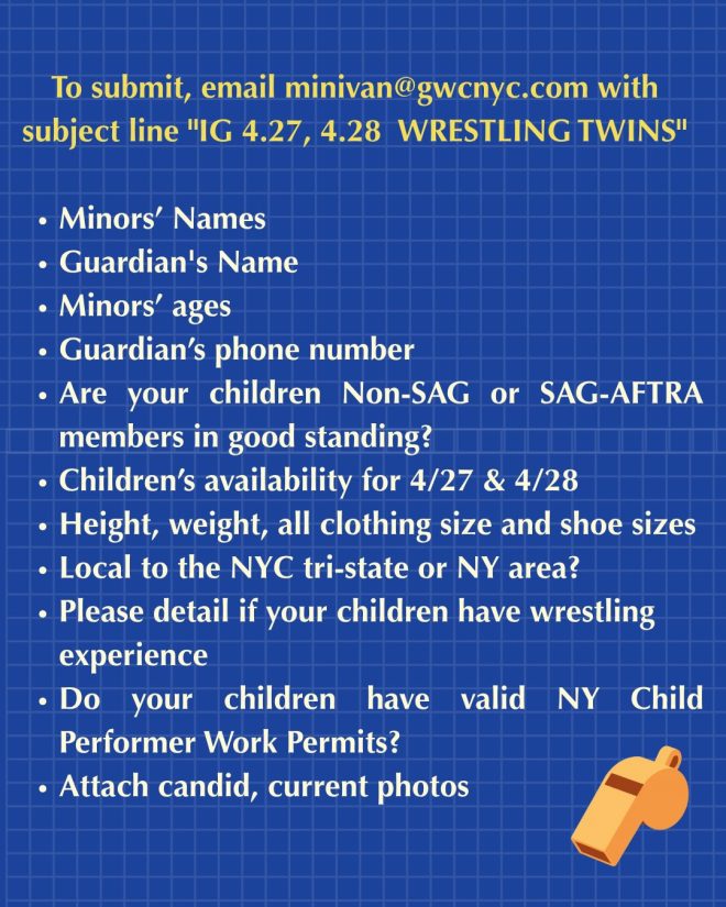 GWC is looking for 11–14 year old twin wrestlers for upcoming series Minivan.