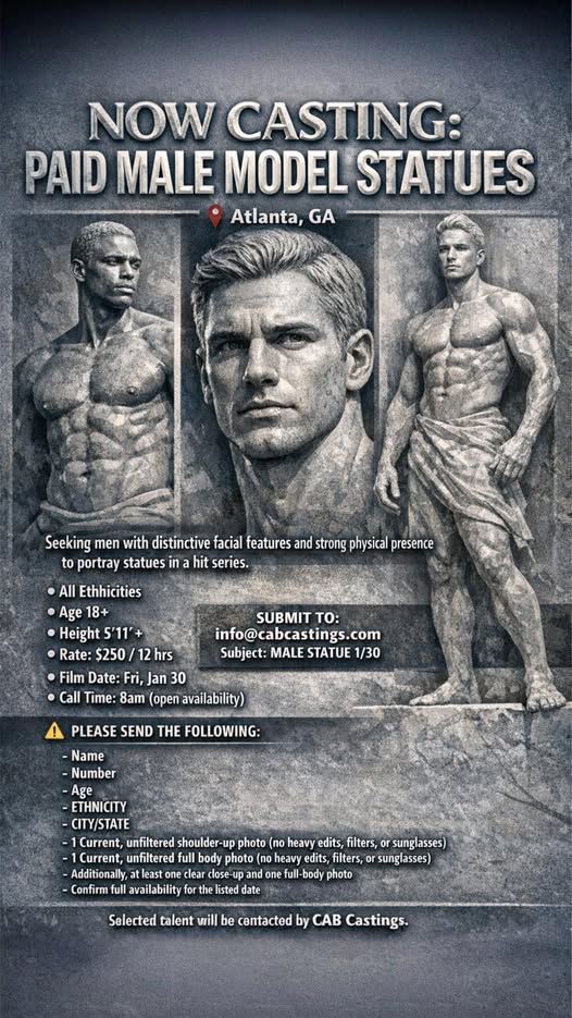 NOW CASTING PAID MALES to portray STATUES for a scene in a hit series filming here in Atlanta, GA