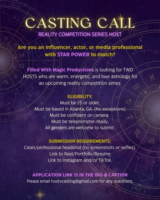 A new reality competition series is searching for two dynamic hosts in Atlanta who can bring energy, charisma, and a strong on-camera presence to the show.