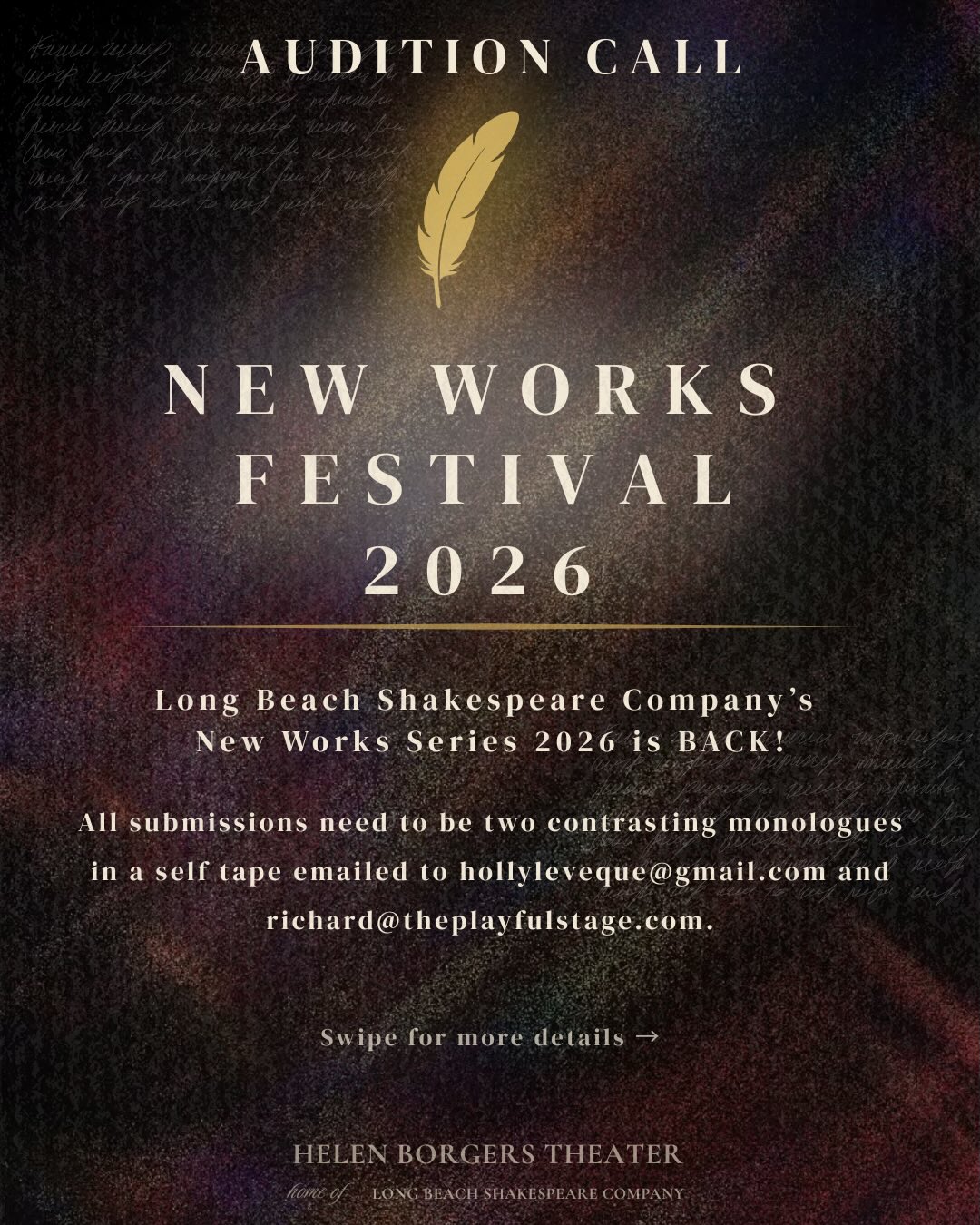All submissions should be emailed to: hollyleveque@gmail.com and richard@theplayfulstage.com