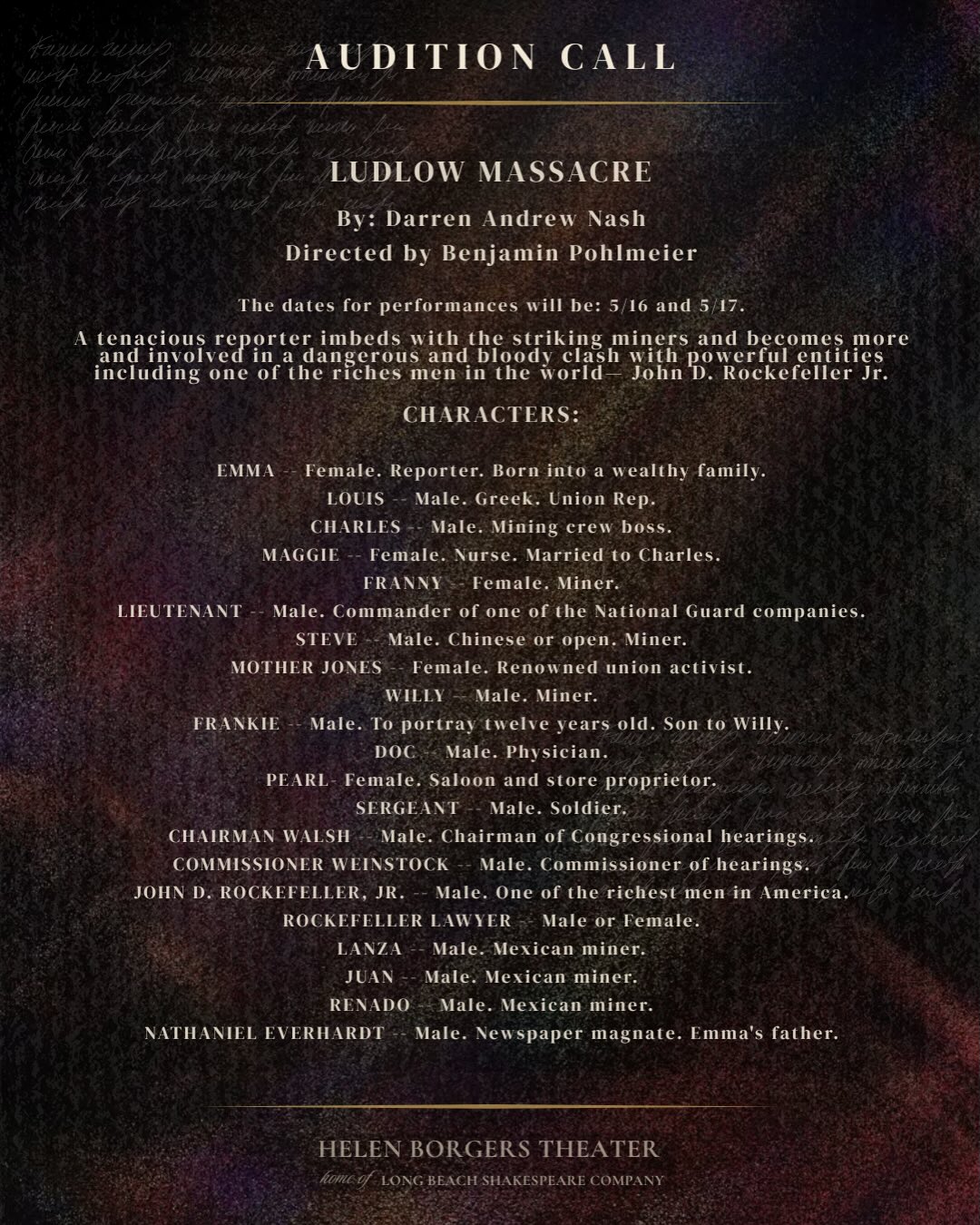 Helen Borgers Theatre, 4250 Atlantic Ave. Long Beach 90807