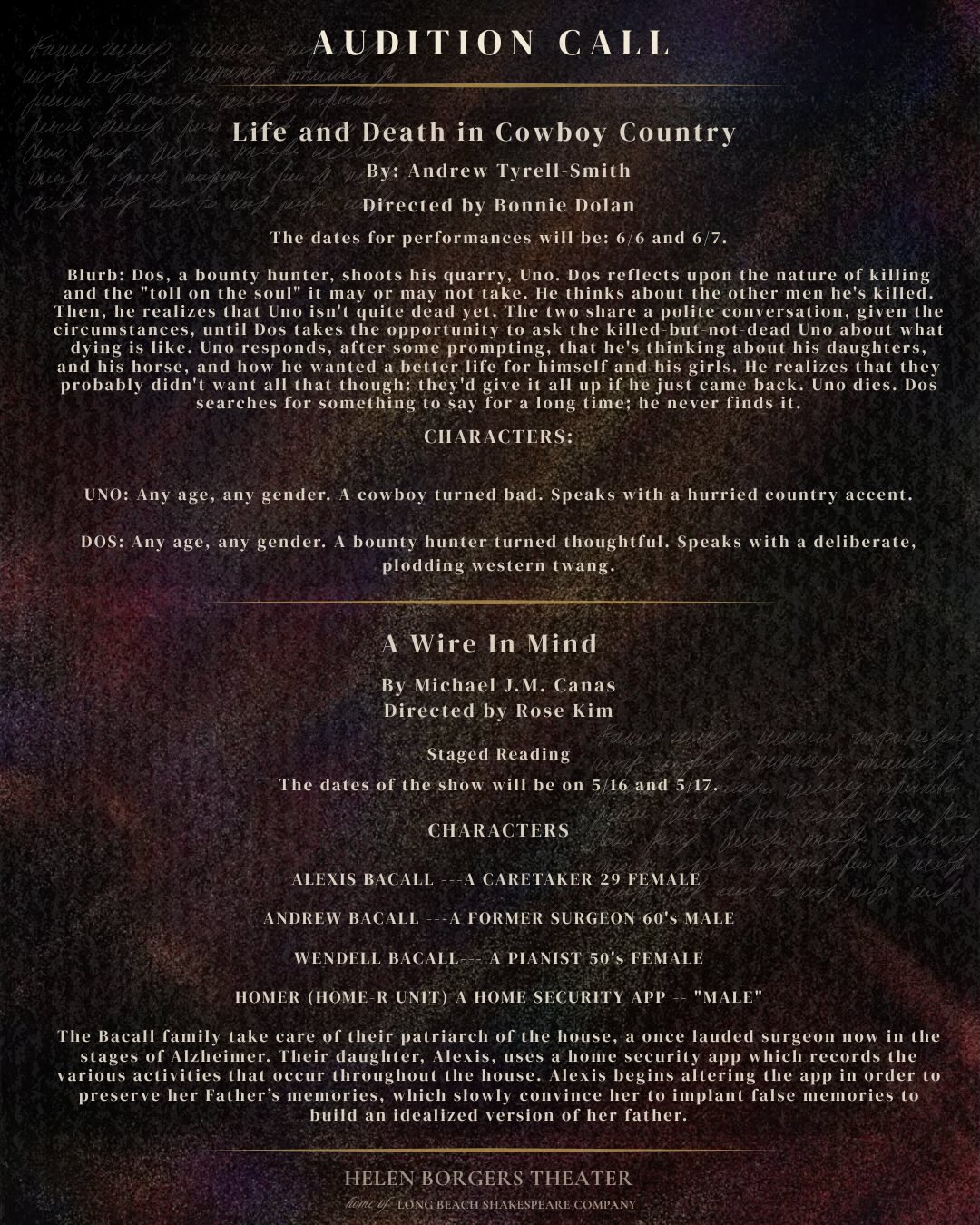 Performances at the Helen Borgers Theatre in Bixby Knolls. 4250 Atlantic Avenue, Long Beach, CA. Tickets available at LBShakespeare.org.
