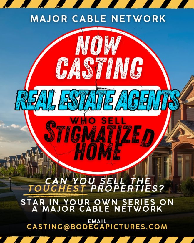 Real estate listing agents with a proven track record of selling stigmatized/problematic homes, helping clients move difficult properties, and bringing real industry experience, strategy, charisma, and fun to the table. This is your opportunity to star in your very own series.
