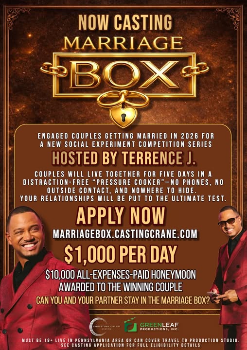 “Marriage Box” will be hosted by Terrence J and produced by Green Leaf Productions. Furthermore, according to the show, the show puts love, communication, and commitment to the test in a setting designed to strip away distractions. The goal to get to the heart of each relationship in the show.