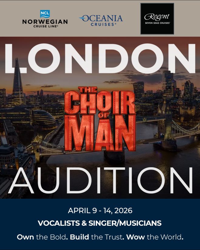 Norwegian Cruise Line Holdings is now casting for the internationally acclaimed stage show The Choir of Man, set to perform aboard its fleet. With contracts starting in 2026, selected performers will embark on 6–8-month tours, earning $1,200 USD per week, all while traveling the world. In addition to The Choir of Man, cast members will also appear in other shipboard productions including ICONS: The Bands.