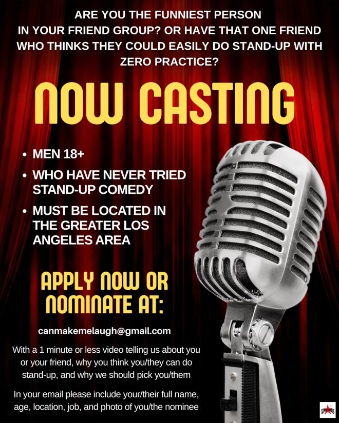 With a 1 minute or less video telling us about you or your friend, why you think you/they can do stand-up, and why we should pick you/them