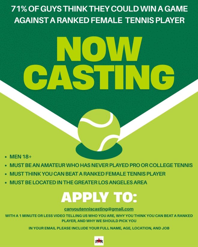 - MUST THINK YOU CAN BEAT A RANKED FEMALE TENNIS PLAYER