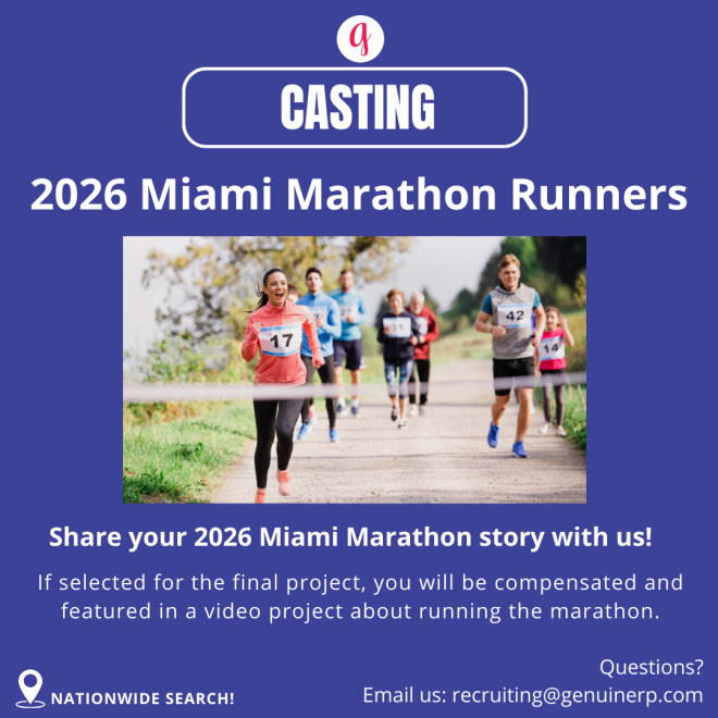 If selected for the final project, you will be compensated and featured in a video project about running the marathon.