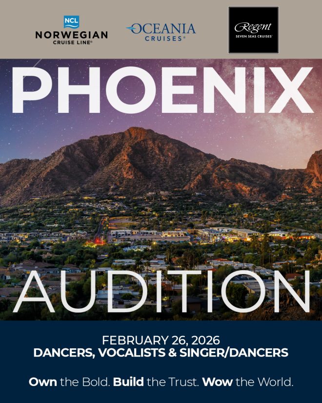 Open auditions in Phoenix, Arizona for Cruise line performers.