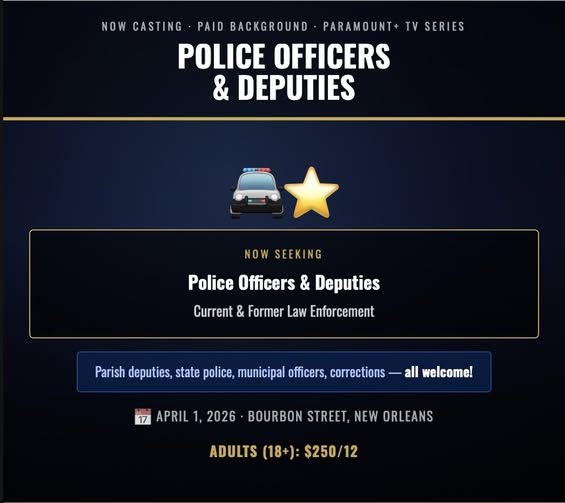 We are seeking background actors for a PARAMOUNT+ TV SERIES filming in New Orleans!