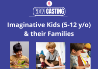 Nationwide Casting Call for Imaginative Kids and Their Families Wanted for a Video Project Genuine is now casting creative and imaginative kids ages 5–12 and their families for a nationwide online audition opportunity. This fun, family-friendly project is looking for English- and Spanish-speaking families of all ethnicities who love to dream big and think outside… Read More »