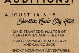 Dolly Parton Dinner Attractions Auditions Location: Nashville, TN. Type: Theater Dolly Parton’s Dixie Stampede, Pirates Voyage and Smoky Mountain Adventures… Read More »Open Auditions for Dolly Parton Shows in Nashville, TN