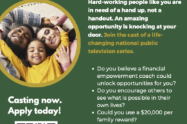 Opportunity Knocks Location: Seattle, WA – El Paso, TX- New Orleans, LA – Baton Rouge, LA – Columbus, OH Audition / Call Type: Documentary “Opportunity Knocks” is a financial empowerment show casting our second season now! Are you or someone you know overwhelmed with bills? Does the money never seem to go as far as… Read More »
