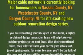 Major cable network is currently looking for homeowners in Nassau County, NY, Westchester County, NY and Bergen County, NJ for it’s exciting new outdoor renovation design series. If you are renovating your backyard in the burbs, a highly acclaimed design renovation team will help take your outdoor project to the next level.  With their exceptional… Read More »