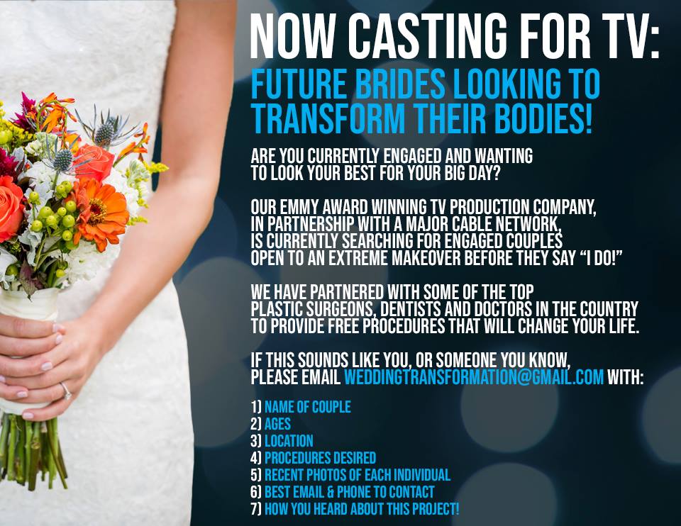 NOW CASTING! Who will walk you down the aisle? Are you getting married and want to reconnect with your dad before you walk down the aisle? A major television company is seeking women who no longer have a relationship with their father and but want him to be there on the big day. If you… Read More »