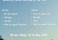 Casting call for short film Location: Singapore Type: Film Looking for Actors for short film Logline: A teenage boy helps recollect the memories of his grandmother, who is suffering from dementia, about the love of her life. Ah Ma: – 65 and above – Chinese – Female – Able to speak Mandarin Jensen: – 16… Read More »