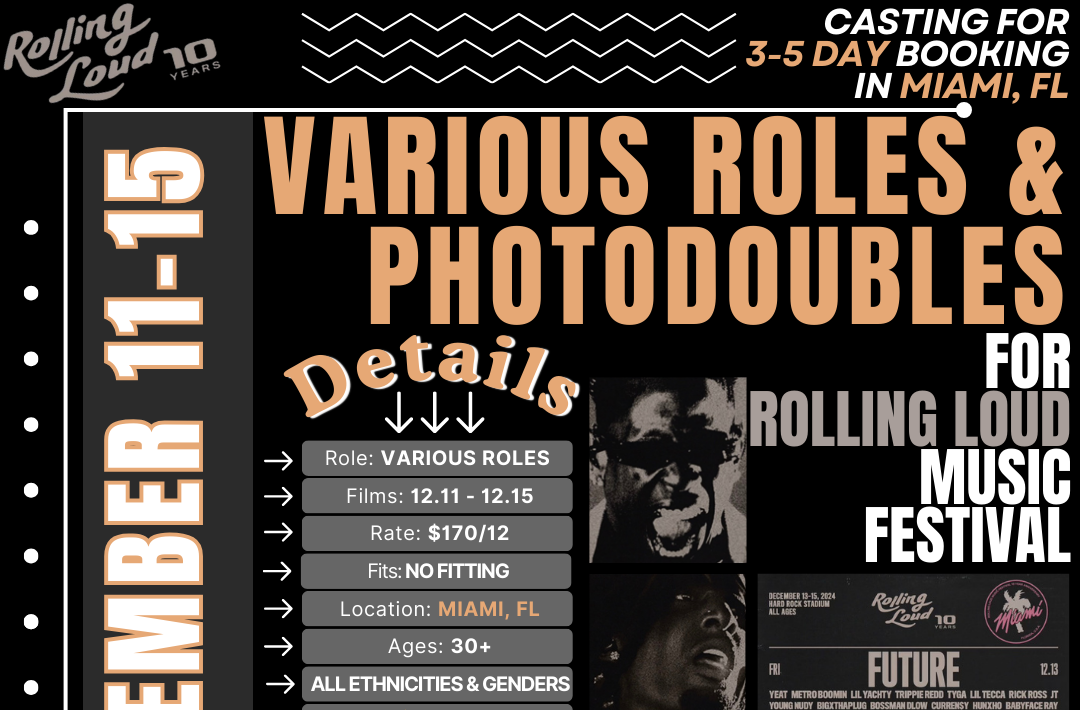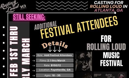 This is an updated call for a “Rolling Loud” filming happening tomorrow. Are you ready to rock? If so, a film about the Rolling Loud Music Festival is currently in production and casting directors are seeking to fill many paid background actor roles in the Atlanta, Georgia area. Rolling Loud is the world’s premier hip-hop… Read More »