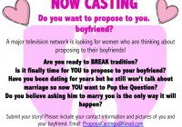 Marriage Proposal Cake Location: Jersey City, NJ Type: Reality TV Are you looking to pop the question in an exciting way? A popular TV show about outrageous cakes is looking for someone who wants to say those 4 words in a creative way “WILL YOU MARRY ME?” If you are in the Jersey City/NYC area… Read More »