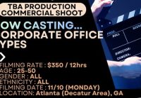 A non-union commercial is now casting in the Atlanta, Georgia area, specifically near Decatur. The production is seeking local talent between the ages of 25 and 50 of all genders to appear in a professional corporate-style shoot. Filming will take place on Monday, November 11, with a morning call time and a standard wrap time… Read More »