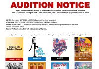 2017 Professional Season Generals Location: Indiana Type: Theater 2017 Season Productions include: Original 60s Jukebox Musical The Miracle Worker Church Basement Ladies All Shook Up Sisters of Swing Million Dollar Quartet Sister Act MDT Christmas Production Myers Dinner Theatre MAINSTAGE 108 Water St. Hillsboro, IN 47949 Sunday 12/18/2016 6PM Callbacks Same Day Payment: Other Salary/Stipend… Read More »