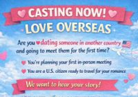 CASTING NOW! LOVE OVERSEAS. A US production company is now seeking people who are in long distance relationships with partners who live overseas. Are you dating someone in another country and going to meet them for the first time? You’re planning your first in-person meeting? You are a U.S. citizen ready to travel for your… Read More »