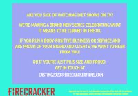 Firecracker Films Location: Liverpool, Manchester, Newcastle, Leeds Type: Docu-series Firecracker Films are on the look-out for FUN, CONFIDENT & BODY-POSITIVE individuals for an exciting new documentary series! We’re particularly interested in hearing from people living in the North of England. Please get in touch at: casting2020@firecrackerfilms.com Payment: Other City or Location of call: Liverpool, Manchester,… Read More »