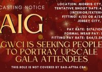 Paid Extras for movie needed in New Jersey. A movie or TV show project currently called “AIG” is seeking New Jersey locals who are available to work on set. LOCATION: MORRIS CTY, NJ TENTATIVE SHOOT DATE:4/28 (INTERIOR/EXTERIOR) FITTING: 4/23 OR 4/24 IN JERSEY CITY, NJ PAY RATE: $176/10HRS FORMAL WEAR PAY: $27 FITTING PAY RATE:… Read More »
