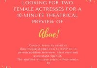 Lead Male Actor Location: Providence, Rhode Island Type: Theater ACTOR needed – male. “How Many Bushels Am I Worth?” is an original play by Kevin Olson and Bena Shklyanoy; directed by Kevin Olson. Performances over 3 weekends January 9-26, 2020 (14 performances total) in Providence, RI (AS220 95 Empire Black Box) and in Brooklyn NY… Read More »