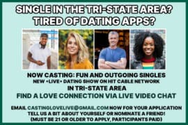 LIVE Dating Show on TLC Location: New York, New Jersey, Connecticut, Pennsylvania Type: Reality TV This is not an acting… Read More »Video Auditions for Singles in NY Tri State Are and Pennsylvania for New Dating Show