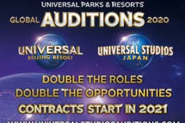 Universal Beijing Resort & Universal Studios Japan Global Auditions! Location: nationwide Type: General Performers Universal Parks & Resorts Global Auditions! Double the roles Double the opportunities This year, Universal Beijing Resort (UBR) and Universal Studios Japan (USJ) are combining their auditions to fill roles within both parks. 2021 is the exciting inaugural year for the… Read More »